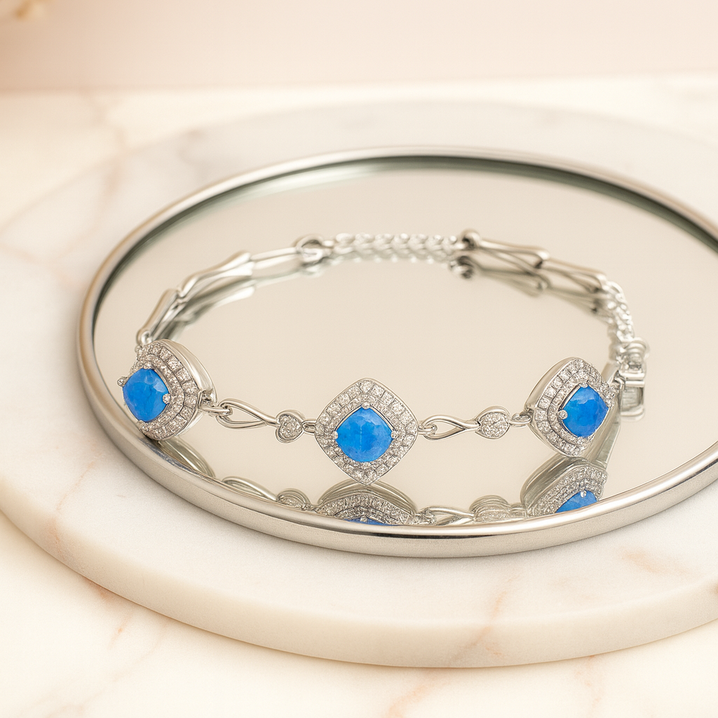 Stone Type: Blue Opal & Cubic Zirconia (AAA Grade)